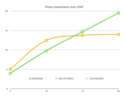 Na pierwszy ogień poszedł Philips z modelem Dreamstation. Wcześniej testowaliśmy urządzenie Auto CPAP i wykres wyglądał następująco: