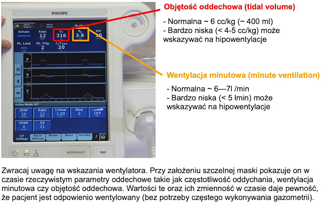 ◦ Skuteczność wentylacji (objętość oddechowa, wentylacja minutowa, wskaźniki gazometryczne)