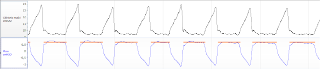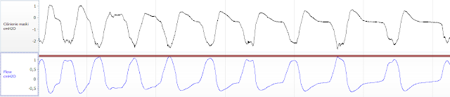 As you can see, the graph looks almost identical – so it seems to be a intentional characteristic of the device influencing the respiratory pattern we are dealing with at ResMed. The strong drop in the expiratory phase is, in my opinion, good (you can see that there is no resistance), the rounding of the graph in the last phase is a slight „pressure support” of the last phase of expiration.