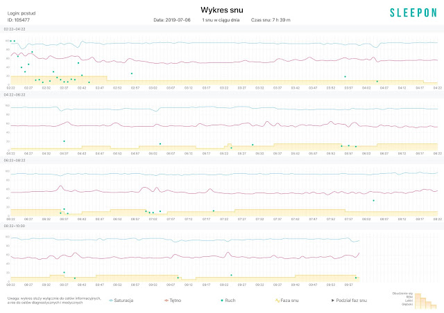 – jak efektywny był sen (fazy snu, z określeniem długości snu głębokiego)