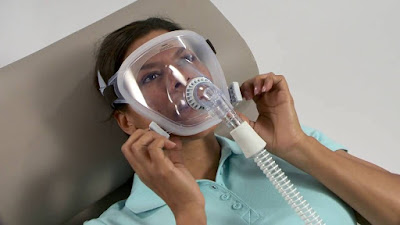 MINUSY: nie można spać na twarzy, rura ogranicza pole widzenia- model ten został wyparty przez maski w typie Philips DreamWear