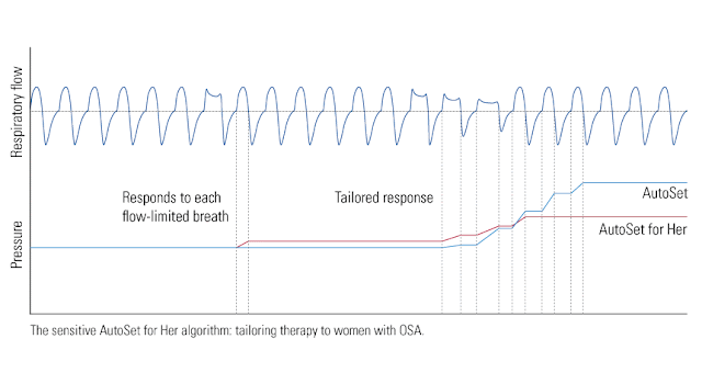 Ostatnią ciekawostką jest fakt, że Resmed daje w pewnym stopniu kontrolę nad algorytmem użytkownikowi. W swoich urządzeniach dał funkcję, która ogranicza skoki ciśnienia dla osób, którym one przeszkadzają. Przygotował też zupełnie inny algorytm dedykowany dla kobiet. Bo jak się okazuje bezdech kobiecy jest zazwyczaj inny niż ten u mężczyzn. Dlatego w wersji Air Sense 10 For Her można włączyć algorytm, w którym urządzenie reaguje zdecydowanie szybciej na bezdechy ale równocześnie podawane ciśnienie nie rośnie tak szybko jak w standardowym aparacie. Jestem przekonany, że w kolejnych wersjach urządzenia, pojawi się także opcja w której to aparat będzie potrafił wybrać jaki rodzaj algorytmu jest optymalny dla danej osoby i prawdopodobnie pojawi się ich więcej niż dwa.