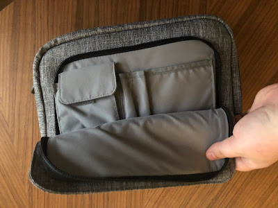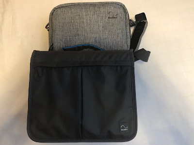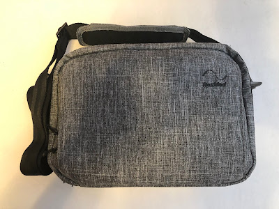 dodatkowo w futerał i torbę. Początkowo kupiłem tylko niewielki sztywny futerał na sam aparat, z myślą, że będę AirMini woził „luzem” w plecaku. Jest on tak mały, że spokojnie zmieści się nawet w kieszeni kurtki i to razem z maską… ale szybko się zorientowałem, że do tego dochodzi jeszcze rura i zasilacz. Dlatego koniec końców kupiłem także dedykowaną torbę na ramię. Jest niewielka i ma praktyczną kieszeń na dodatkowe „gadżety” w której umieściłem dokumenty i podręczne lekarstwa. Przy pustym plecaku torba w całości mieści mi się do środka, a jak muszę zapakować coś więcej, to ubieram ją na ramie i jest zdecydowanie mniejsza i wygodniejsza od tej z AirSense.