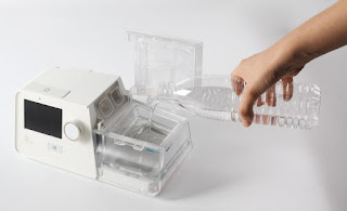 Nawiasem mówiąc nawilżacz chyba jest najciekawszym elementem w tym projekcie. Umożliwia on wygodne dolewanie wody bez wyciągania nawilżacza (niech rzuci maską, kto tego nie robił w Dreamstation), a równocześnie szybko można odłączyć cały nawilżacz aby go umyć w razie potrzeby. Nawilżacz montowany jest na zatrzask wymagający naciśnięcia zanim