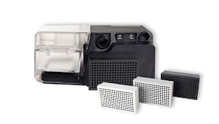 HEPA dołączane do koncentratorów tlenu. To największy filtr jaki widziałem do CPAP i przy nim filtry Resmed czy Philips wyglądają jak dziecinne zabawki. Jego duża objętość nie tylko obiecuje efektywność filtracji ale na pewno nie będzie ograniczała przepływów (w Philips zawsze miałem poczucie, że filtr może powodować takie problemy).