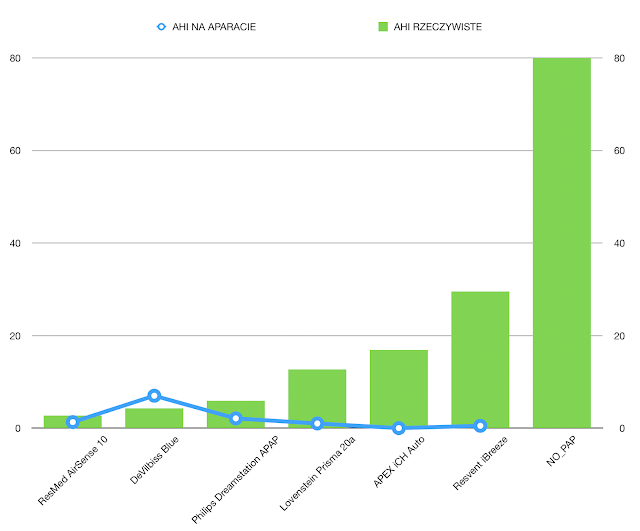 I think it’s gonna surprise a lot of people. Indication of AHI from the instrument in most cases has nothing to do with its actual value. Therefore, CPAP should not be treated as a diagnostic device, and the data presented on it should be treated only as an approximate value. This approximation is close to the truth only in ResMed, Philips and DeVilbiss.