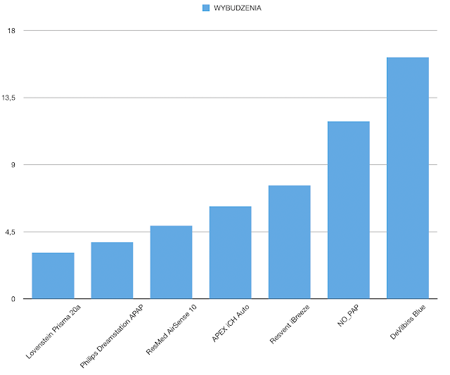 Prisma managed to manage in our test quite decently, despite the relatively high AHI index. It deserves additional points for high comfort from the lowest pressure (probably thanks to the most efficient pump in the test). I had the lowest indicator of awakenings on it. It did quite well with snoring (7.2) and ODI (13.9). The basic algorithm did not do the best for the hyponeas.