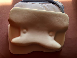 Górna, wycięta poduszka jest z miękkiej pianki termoplastycznej z efektem pamięci, ta druga jest ze zwykłej gąbki. Sam kształt poduszki jest bardzo dobrze  przemyślany. Poduszka na prawdę robi dobre wrażenie.