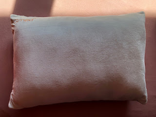 Na koniec zostawiłem sobie poduszkę, która zrobiła na mnie najgorsze pierwsze wrażenie. Poduszka jest dość kiepsko odszyta, a sam materiał jest w odczuciu sztuczny i nieprzyjemnie śliski. W środku znajdziemy tylko jedną warstwę z pianki teromoelastycznej, z efektem pamięci. Nie ma więc mowy o żadnej reguacji i sama pianka termoplastyczna z pamięcią. Poduszkę wyposażono- podobnie jak Contur- w mocowanie węża, ale tutaj jest tylko cieniutki i kiepsko wyglądający pasek materiału.